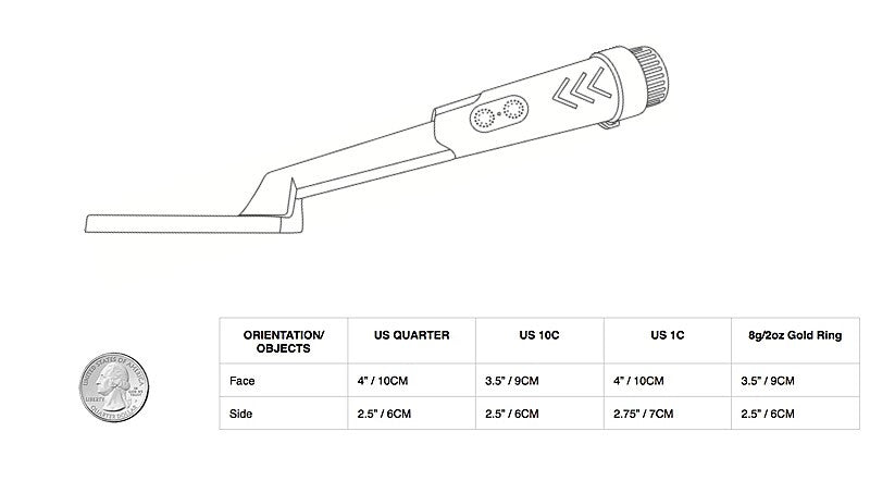 Congratulations on your selection of the SHRXY Dive Metal Detector. The SHRXY is a hand-held metal detector designed to precisely pinpoint metallic (ferrous and nonferrous) objects during treasure recovery. The SHRXY has both audible and vibrating alarms to indicate the presence of metal objects. The alarms increase in intensity as the dive detector is moved closer to the metal target. With a 4.7"x3"coil, the SHRXY dive detector is very effective in easily detecting even the smallest of metallic objects. An LED flashlight assists in dark and low light conditions. The SHRXY has a diving standard waterproof rating fully protecting it from the environment and allowing it to be washed under running water or operated under the water at depths of 60m. On land the SHRXY is intended for use in conjunction with a ground search metal detector to aid in the discovery of metallic targets. The SHRXY Dive detector durability based on STD 81 F-will provide years of reliable operation even in rugged environments.
